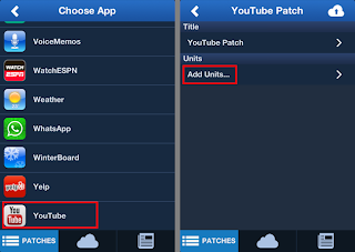 - "Flex" ၏ Patches tab ထဲမွ "+" ကိုႏွိပ္၍ YouTube App ကို ေရြးခ်ယ္ပါ။